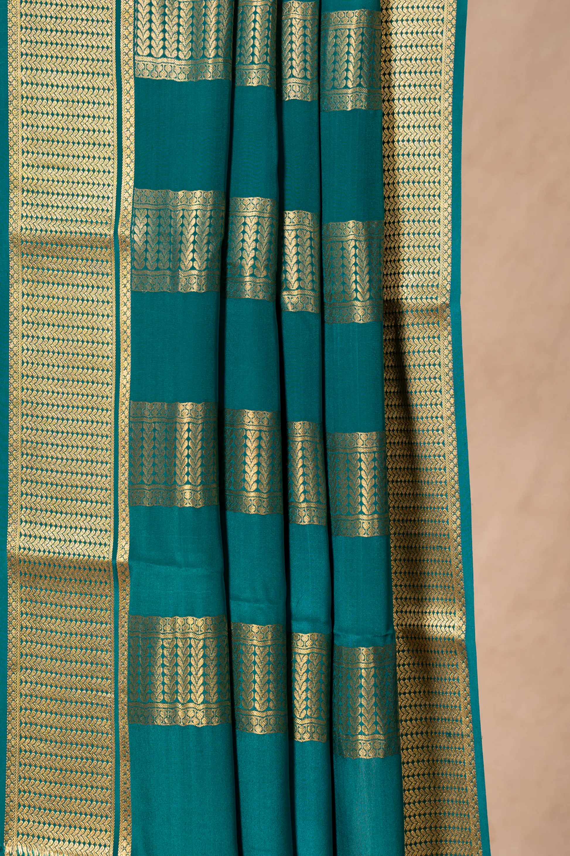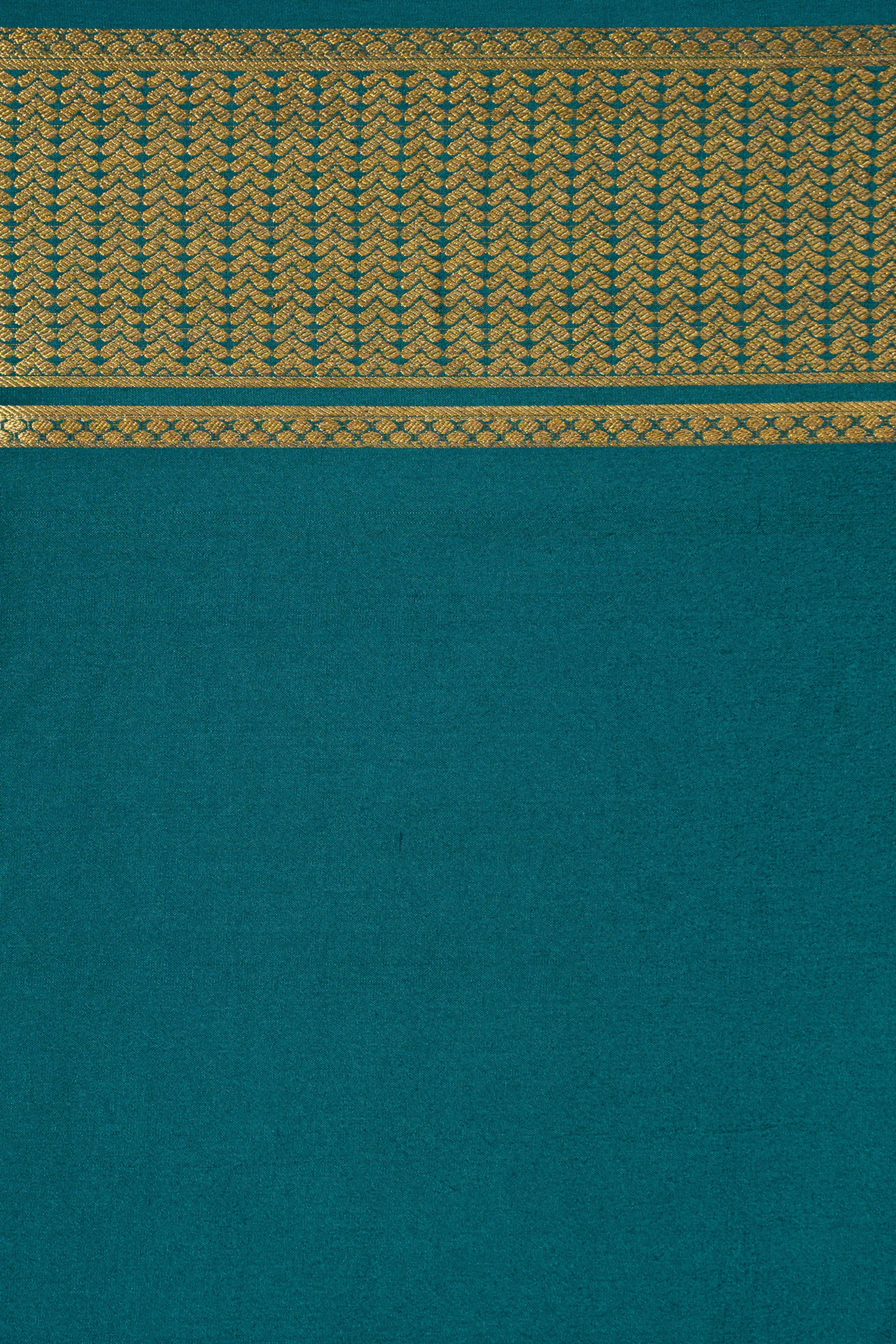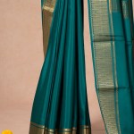 This teal blue Mysore silk saree has a fresh and pleasant colour that stands out nicely. The rich border highlights the saree and gives it a complete look. With its natural shine, it is a good choice for festive gatherings, family events, or daytime functions where you want something elegant yet simple and easy to style.